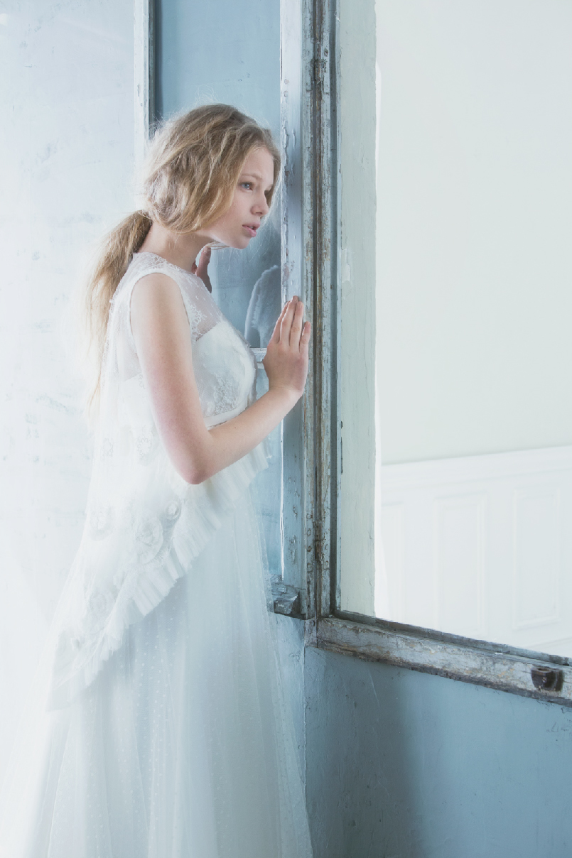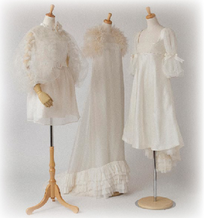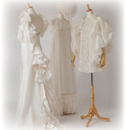 デザイナ-自らがセレクトした国内外のシルクやレースをふんだんに使用した1着。